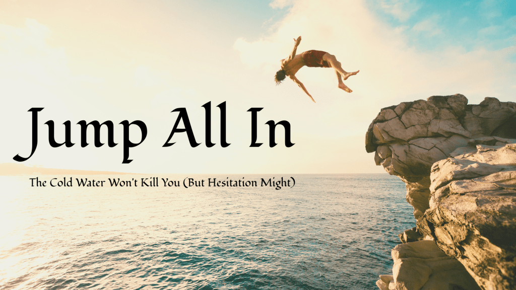 I want to make a case for jumping all in, and then balance that in another article, making a case for incrementalism. Like entering a cold swimming pool, if we take little steps and slowly descend lower and lower, we are just tortuously prolonging our discomfort. But if we jump all in, yes, we get a blast of cold, but then we adjust, move on, and enjoy it.